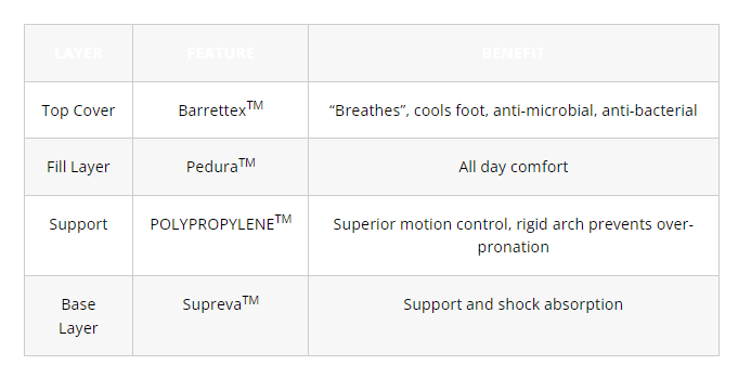 The BarrettexTM top cover wicks away moisture while maintaining a soft upper for extra comfort and dryness.