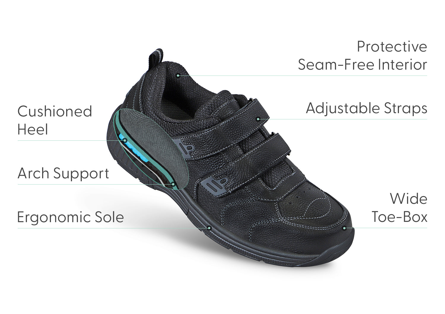 Soft, padded fabric interior with no overlays eliminates irritation and provides superior protection for sensitive feet, including those with neuropathy and diabetes