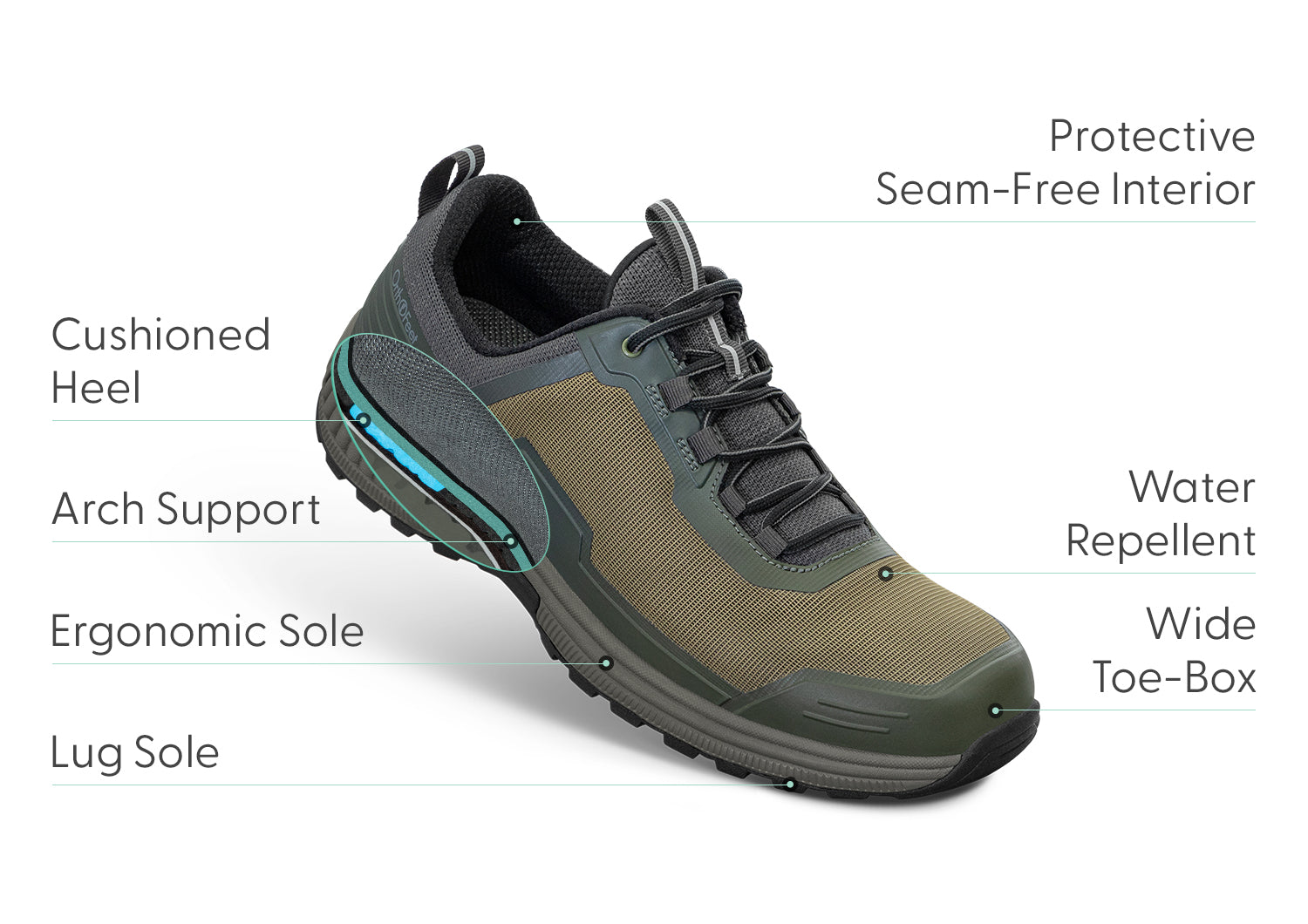 From the water-resistant upper to the high traction lug tread, the light-and-able Cascade tames the trail and make trekking comfortably low-impact, even for sensitive feet. Spend miles pain-free, with customizable Ortho-Cushion™ System support and comfort. A roomy, padded interior with wide toe box protects your mobility and prevents irritation and foot pressure from heel to toe.