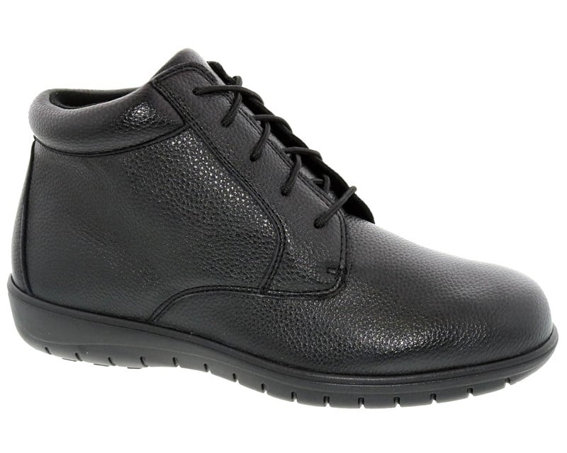 Domino by Footsaver is a sleek mens boot with a pebbled finish that's durable, great-looking and therapeutically beneficial. Domino offers two removable insoles. Keep both in for added depth. Remove one for double added depth. Provides extra control of the gait cycle for overall body health and wellness. A padded tongue and collar make Domino an incredibly comfortable boot.