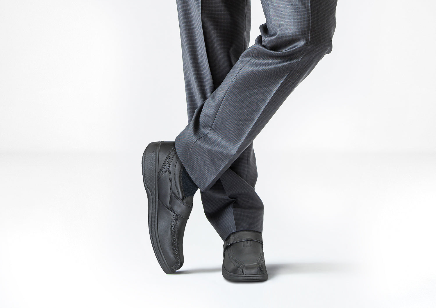 This classic leather pull-strap oxford is ready for every occasion and puts your healthy comfort front-and-center. Enjoy pain-free time on your feet with the adjustable, anatomical support of the Ortho-Cushion™ System. A single strap closure makes these easy to get on and off, while a roomy, adjustable fit, and a smooth, padded interior protect and enhance your mobility.