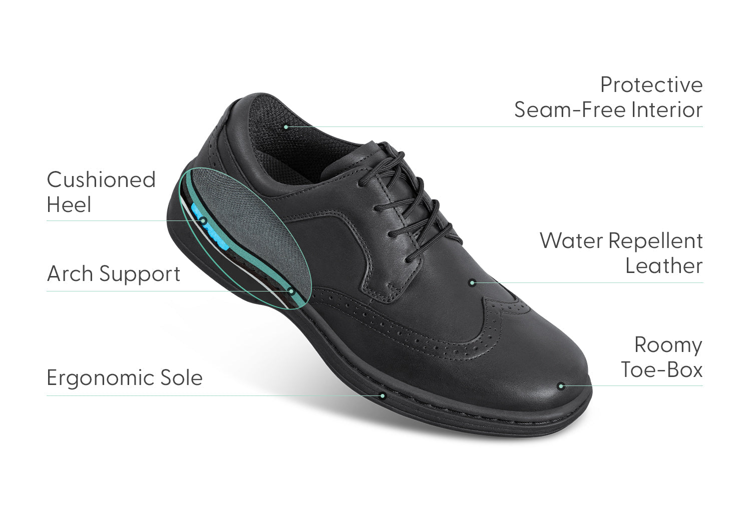 These wingtip brogues in soft leather do more than look dashing, they come with unmatched, performance that takes the pain and irritation out of looking your best all day. From the seam-free interior to the extra depth and wide toe box, Moreno make mobility a pleasure and walking easy, powered by the advanced, adjustable support of the Ortho-Cushion™ System.