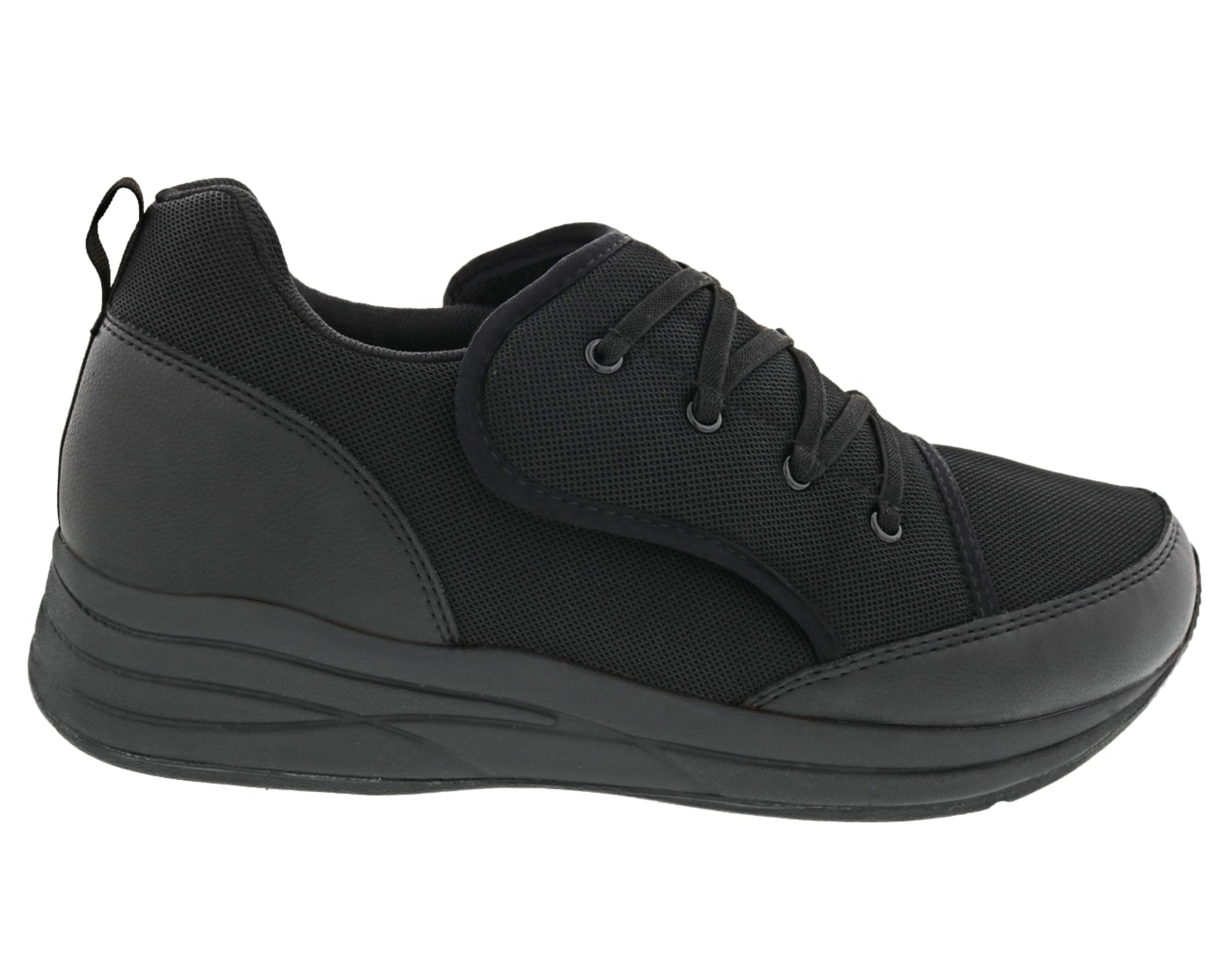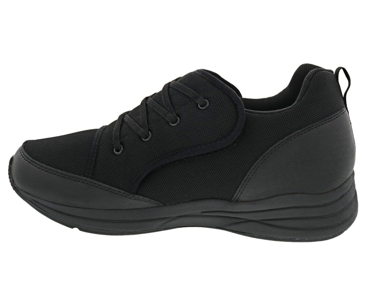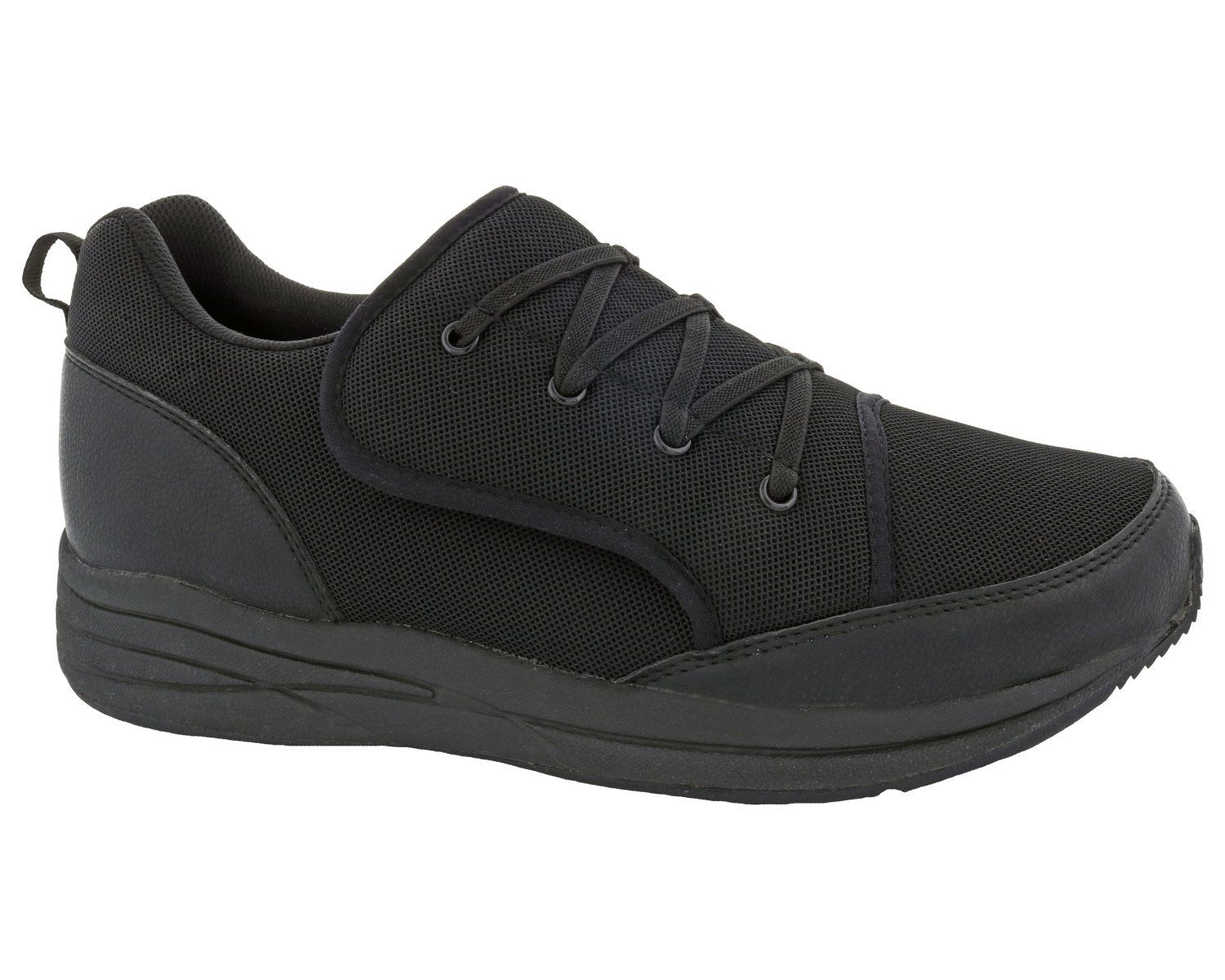 The men's Strength by Drew® features a wide opening for easy foot entry into the shoe. Perfect for post operative or a person with limited mobility. You can easily slip the shoe on and off and securely fasten with the hidden hook and loop under the nonfunctional stretch laces. Two removable footbeds allow for a customized fit. The Drilex®-covered insoles keep the foot cool and dry throughout the day. Finally, a built-in heel cushion pad and rocker bottom with a wide shank add to the overall comfort and performance of our Drew Strength shoes.