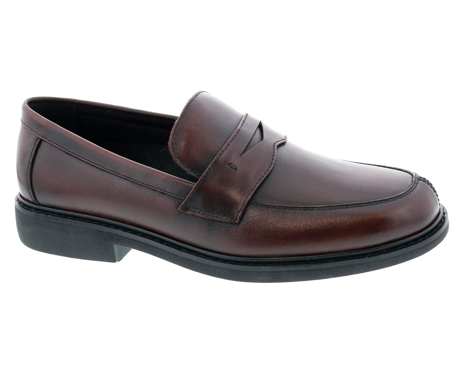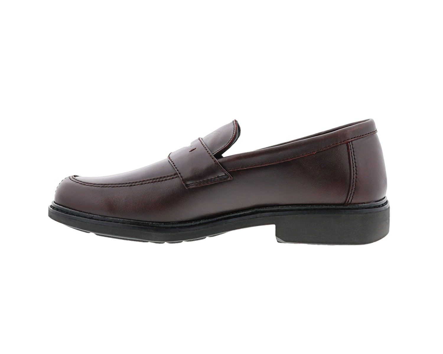 This Drew men’s classic penny loafer offers a timeless style tailored to dress up any outfit.  The Essex by Drew® features added depth with a removable footbed with ultimate arch build-up.  Premium quality leather and lightweight, shock absorbing PU outsole add to this shoes many beneficial features.