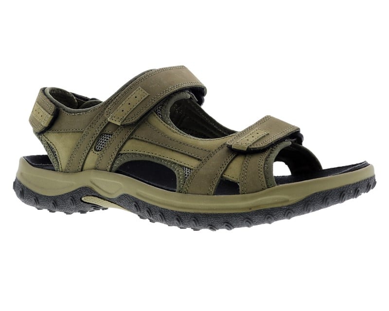 The Drew® mens Warren sandal offers the lightweight comfort provided by a removable, cushioned ULTRON® footbed and the added support of a flexible, shock-absorbing rubber outsole. Three adjustable hook and loop closures add to its customizability. The footbed is removable making the Drew Warren one of the industries only double depth sandal- ready for custom orthotic, while soft, stretchable linings and a natural, oblique toe shape make the Warren one of our best-selling sandals.