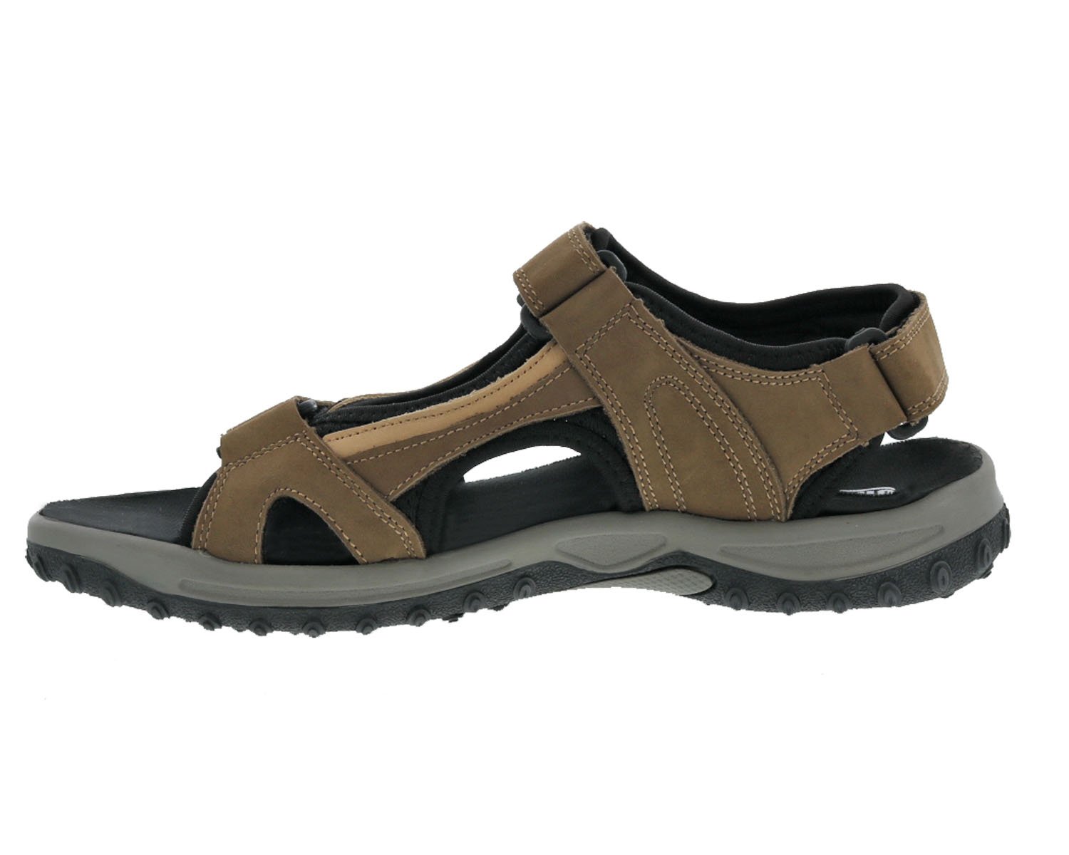 The Drew® mens Warren sandal offers the lightweight comfort provided by a removable, cushioned ULTRON® footbed and the added support of a flexible, shock-absorbing rubber outsole. Three adjustable hook and loop closures add to its customizability. The footbed is removable making the Drew Warren one of the industries only double depth sandal- ready for custom orthotic, while soft, stretchable linings and a natural, oblique toe shape make the Warren one of our best-selling sandals.