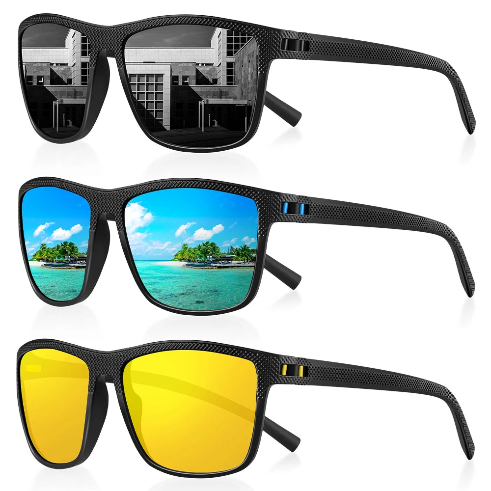 This versatile product is perfect for outdoor enthusiasts. It is designed for both men and women, and features a stylish rectangle shape. The set includes three high-quality pieces, which can be used for different activities such as fishing or sports. Safety and comfort are ensured with polarized, mirrored, anti-reflective, and UV400 lenses. The eyewear is made with acetate frames and durable TAC lenses. With its CE certification, this product is a clear choice for anyone looking for reliable and high-quality sunglasses.