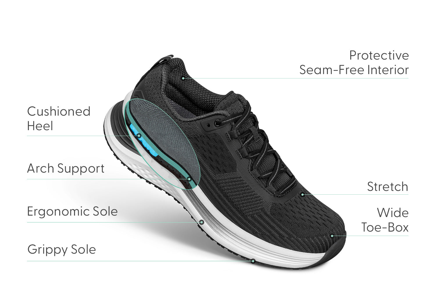 Max cushion sole - offers superior cushioning at the heel & ball of foot.