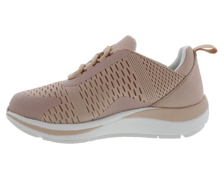 The Sprinter women's lace-up sneaker by Drew features our Walk Right Technology Insole and is engineered for protection and superior comfort. A slip-resistant outsole will keep you on your feet. The high rebound EVA midsole provides shock absorption to reduce foot and leg fatigue. Complete with two removable insoles for added or double depth. Soft, flexknit upper make it ideal for sore, swollen feet.
