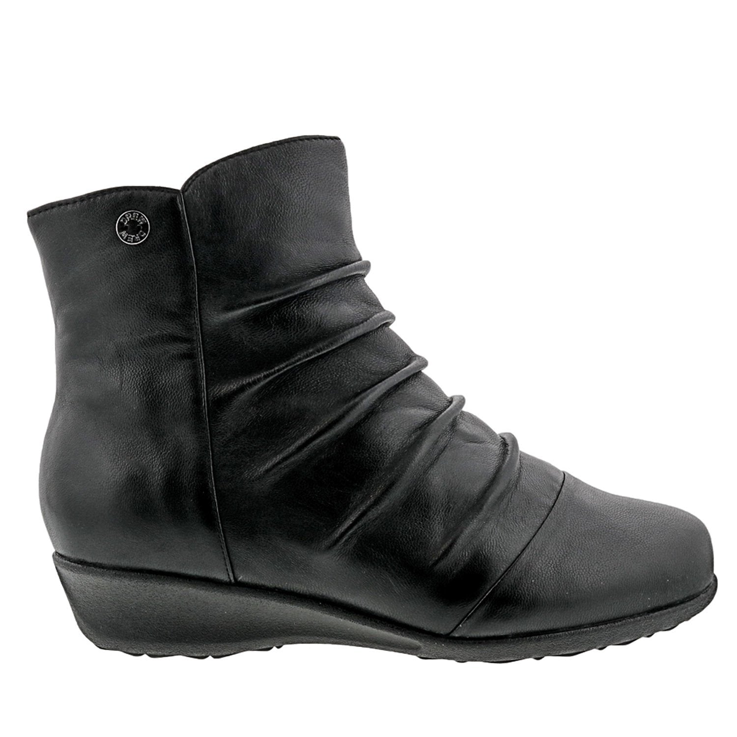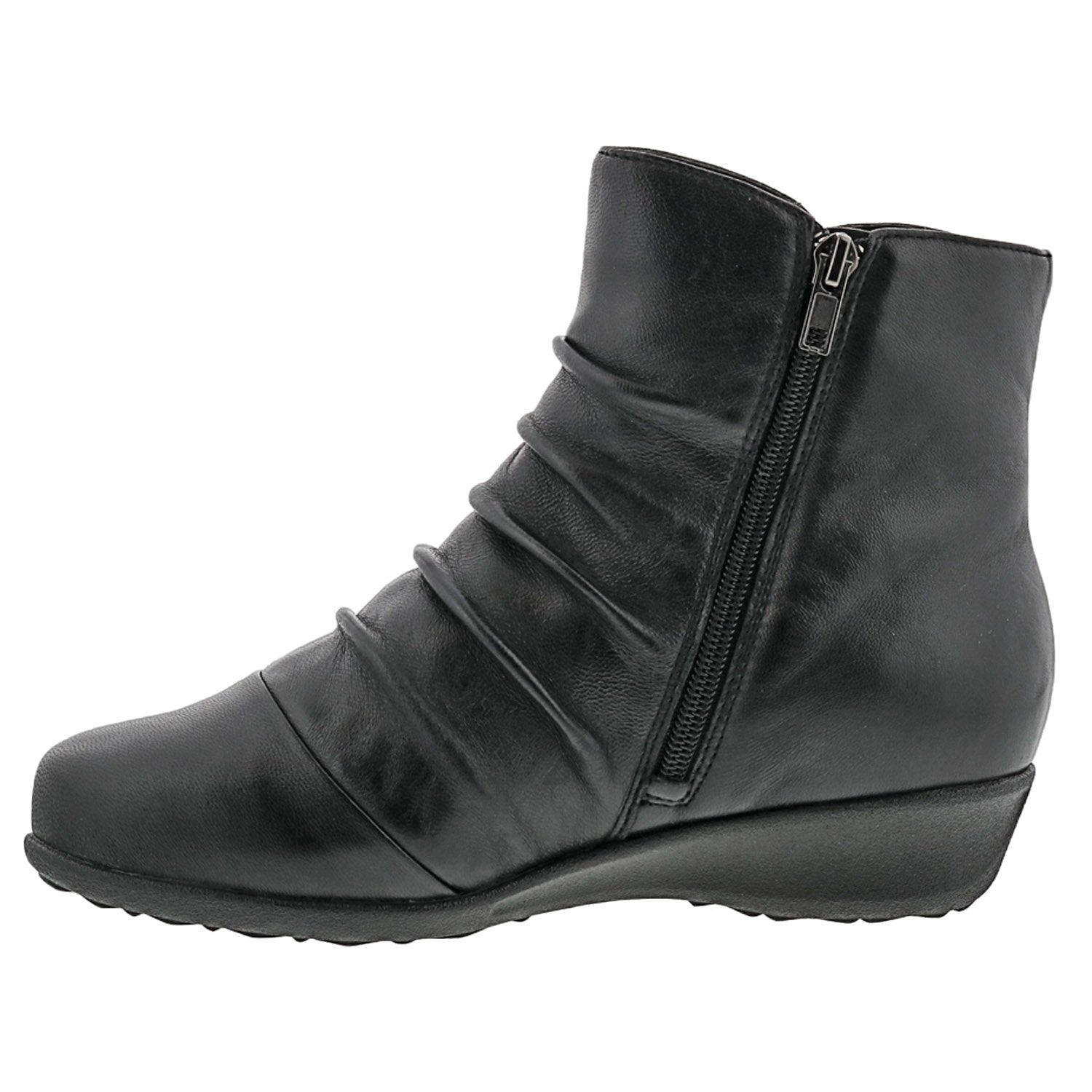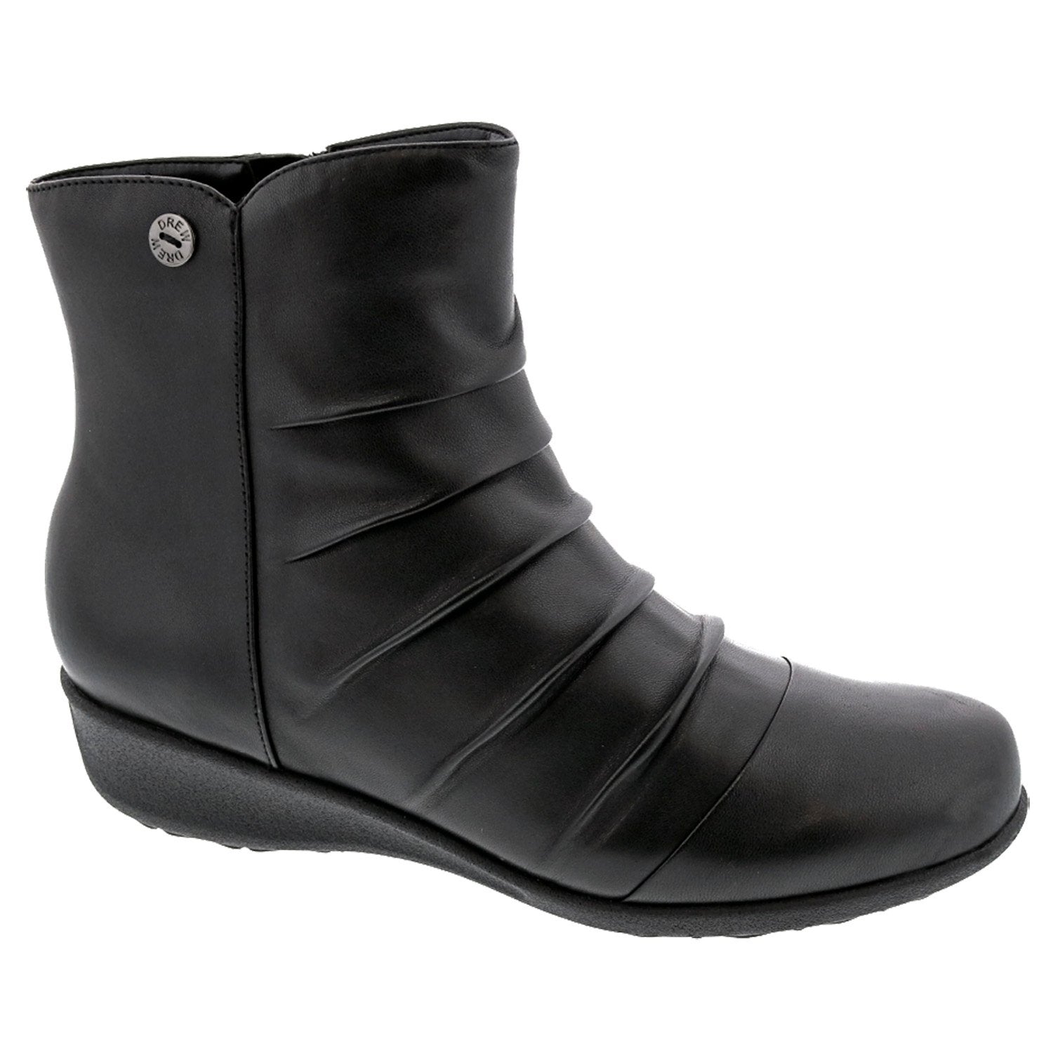 Keep your toes cozy in these Drew® Cologne boots, designed with a side zipper closure and two removable footbeds. A rounded toe and leather ruching complete the sleek look.