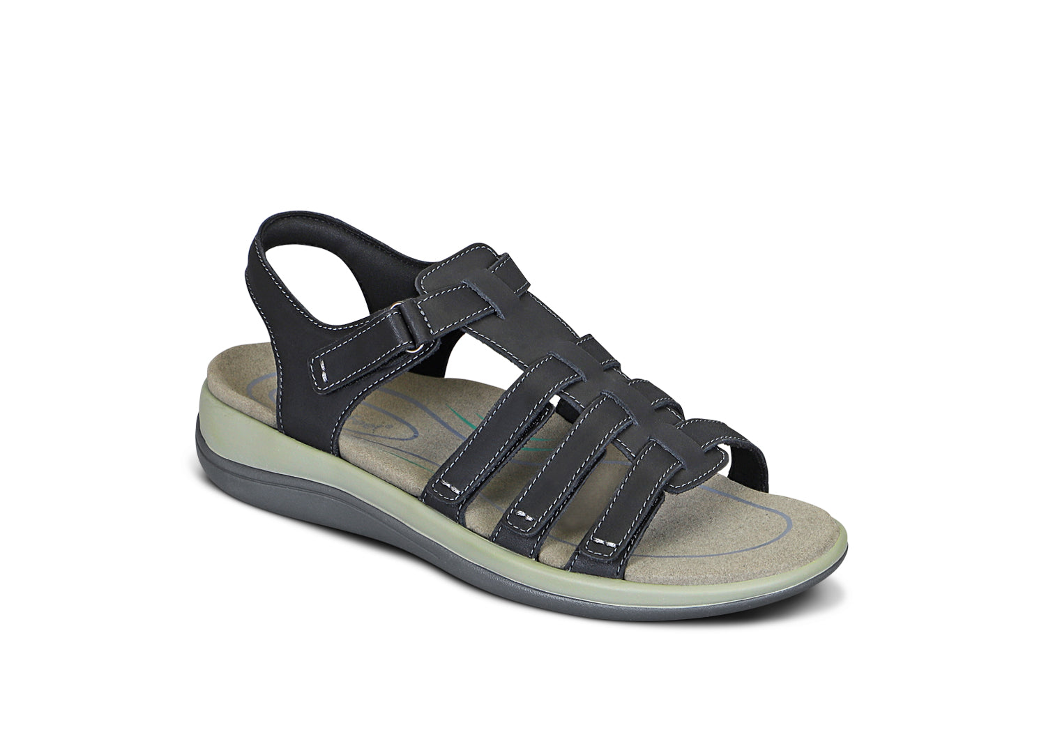 Feel invincible in our surefooted gladiator sandal and enjoy bioengineered walking comfort wherever you roam. Adjust the five padded leather straps for a fully custom fit that places the center strap comfortably atop your foot. Our ingenious inset strap can be adjusted and opened from both sides, so getting into these easy, even when bending over is difficult.