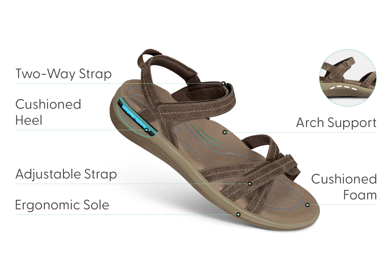 2-way Inset strap system can be opened, closed and adjusted from both sides of the sandal for extended adjustability and easier to access medial (inner) side of the sandal, perfect for individuals who have difficulty bending down.