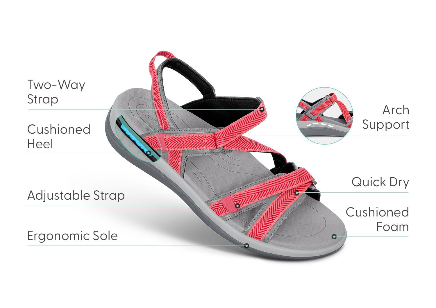 Adjustable, “pocket” forefoot strap - this unique multi-strap avoids putting pressure on the bone area – great for bunions, hammertoes, swollen or wide feet