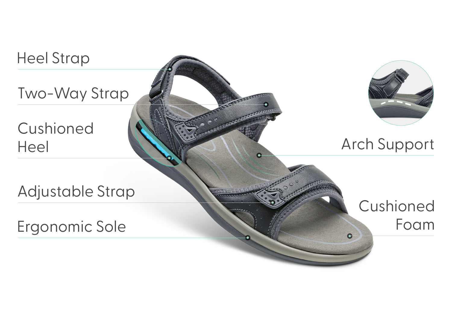 2-way Inset strap can be opened, closed and adjusted from both sides of the sandal for extended adjustability and easier to access medial (inner) side of the sandal, perfect for individuals who have difficulty bending down.