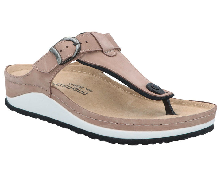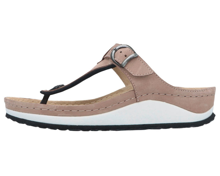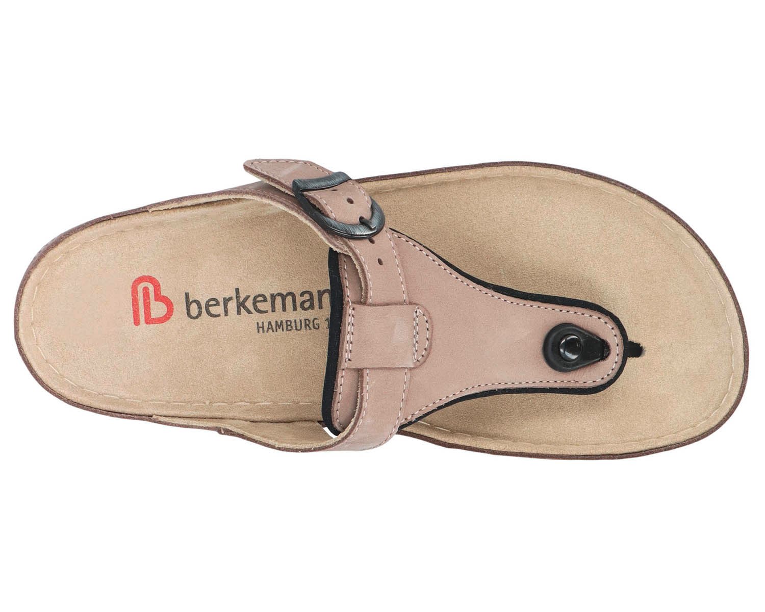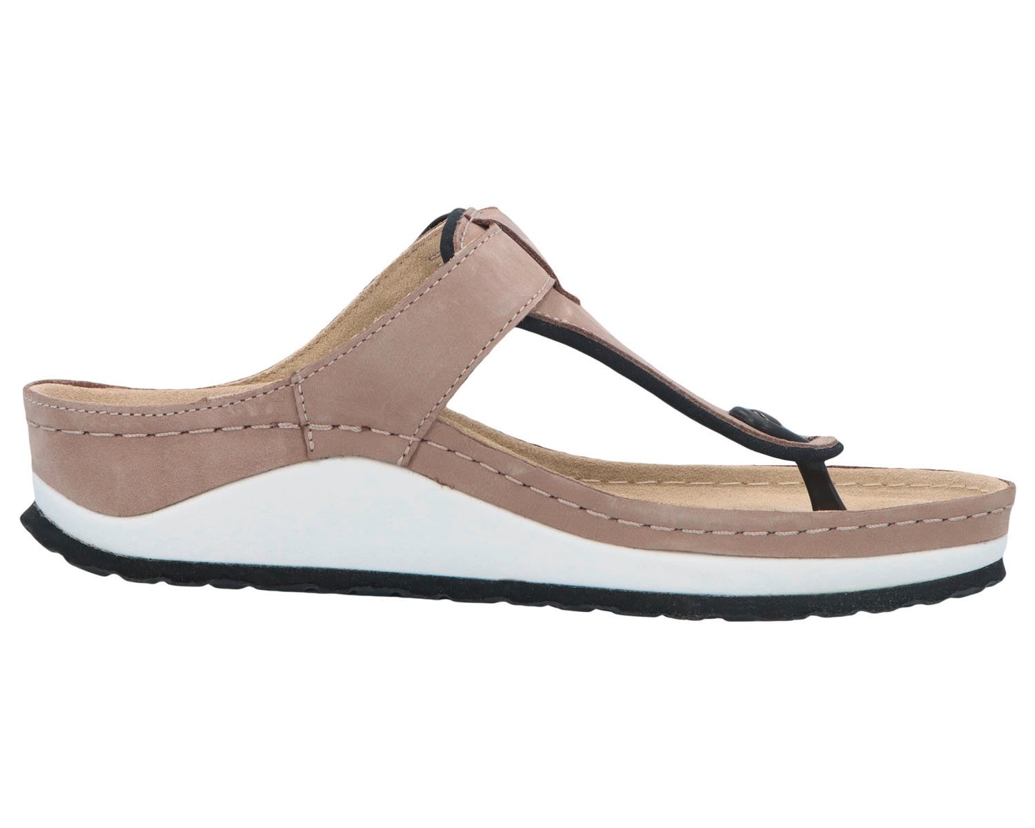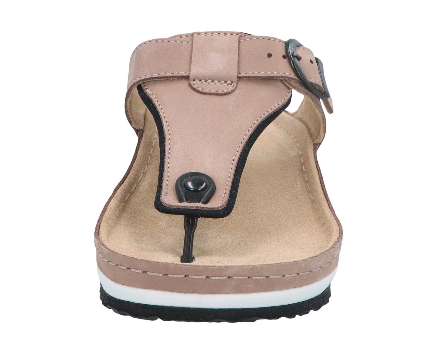 Mila thong sandals delight young and old with their youthful, sporty and yet minimalist design. The striking multicolored wavy line on the side and the fastening on the coordinating upper leather create a unique wellness look. But Mila by Berkemann also scores for comfort. The padded real leather footbed, which is extra-deep and comfortably wide, cushions the foot gently, whilst the narrow strap across the instep is easy to adjust and therefore provides the foot with reliable support. Another special comfort feature of this wellness sandal is the tongue, lined with pleasantly soft, neoprene-like material, softly cushioning the instep on every step.