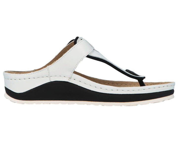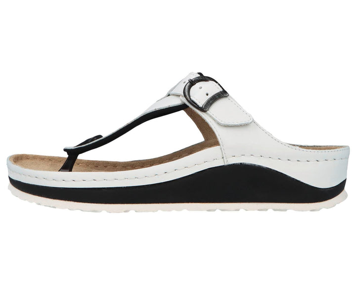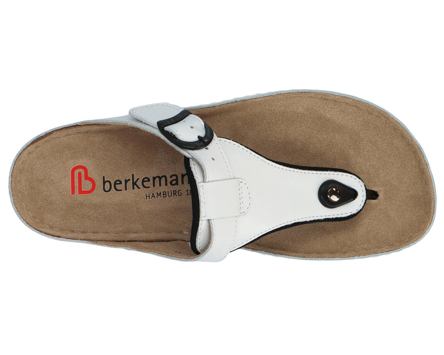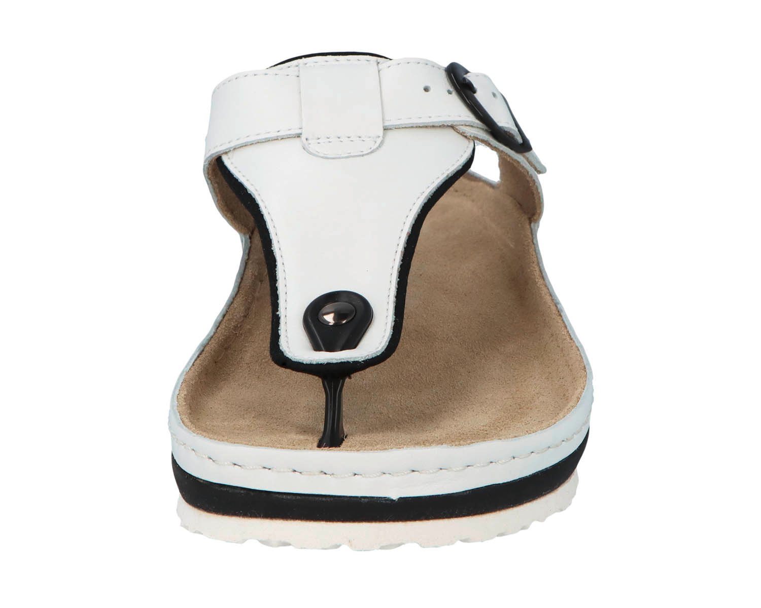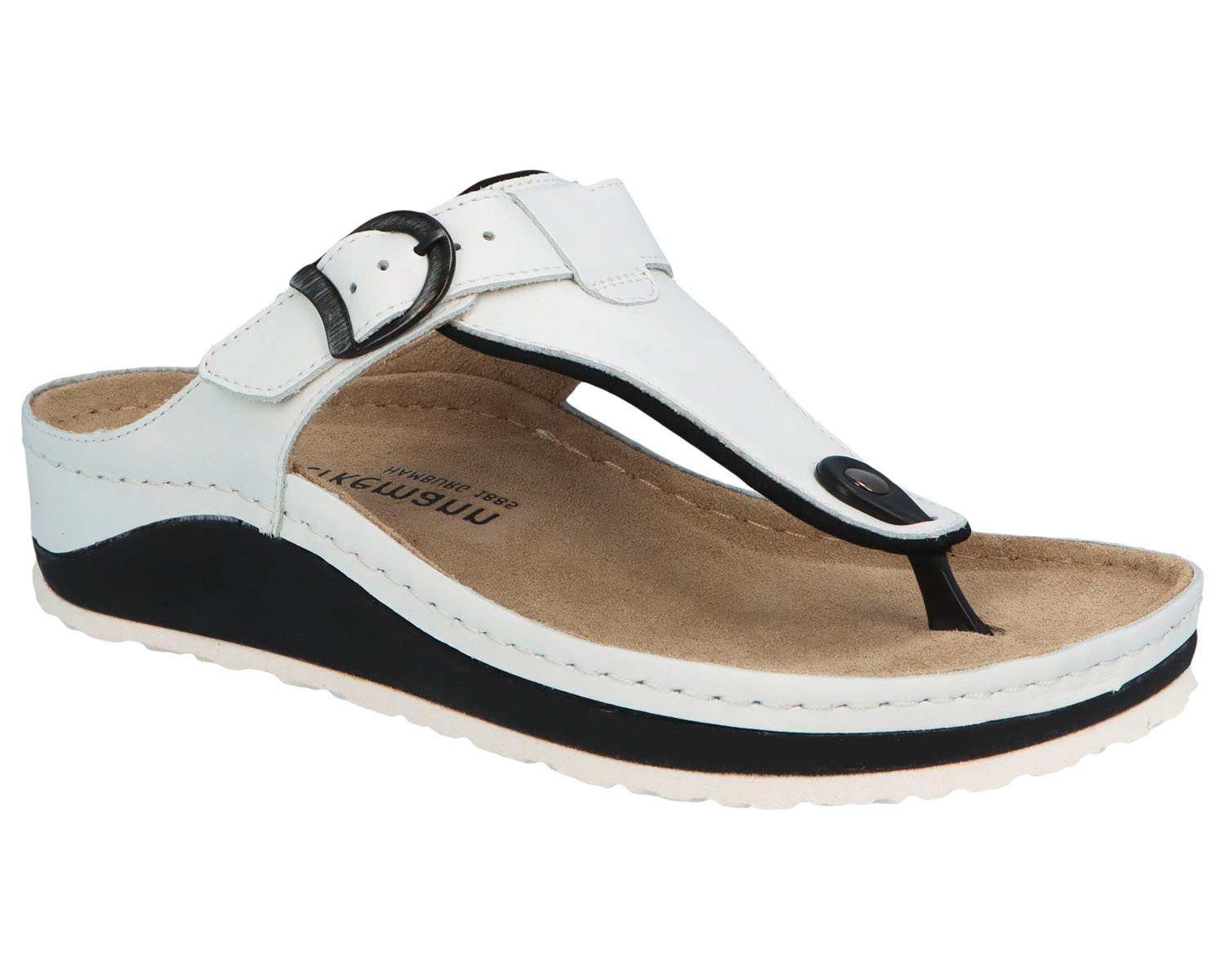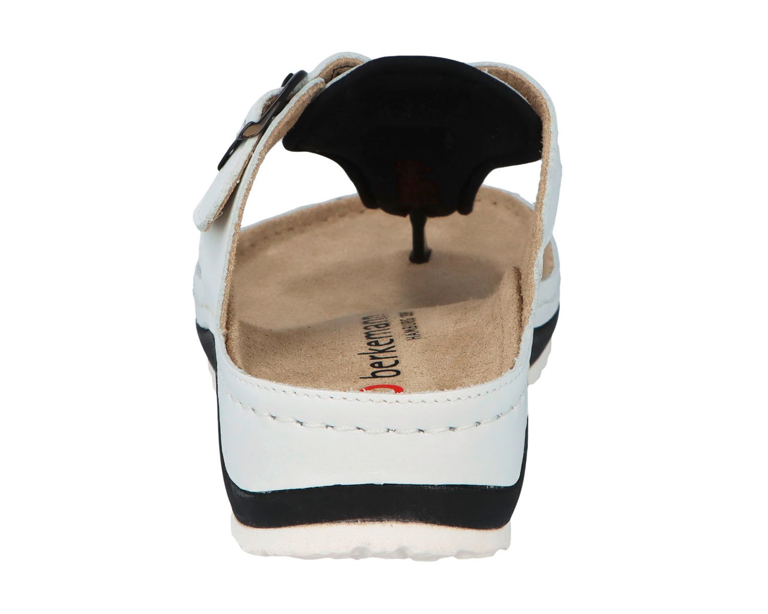Mila thong sandals delight young and old with their youthful, sporty and yet minimalist design. The striking multicolored wavy line on the side and the fastening on the coordinating upper leather create a unique wellness look. But Mila by Berkemann also scores for comfort. The padded real leather footbed, which is extra-deep and comfortably wide, cushions the foot gently, whilst the narrow strap across the instep is easy to adjust and therefore provides the foot with reliable support. Another special comfort feature of this wellness sandal is the tongue, lined with pleasantly soft, neoprene-like material, softly cushioning the instep on every step.