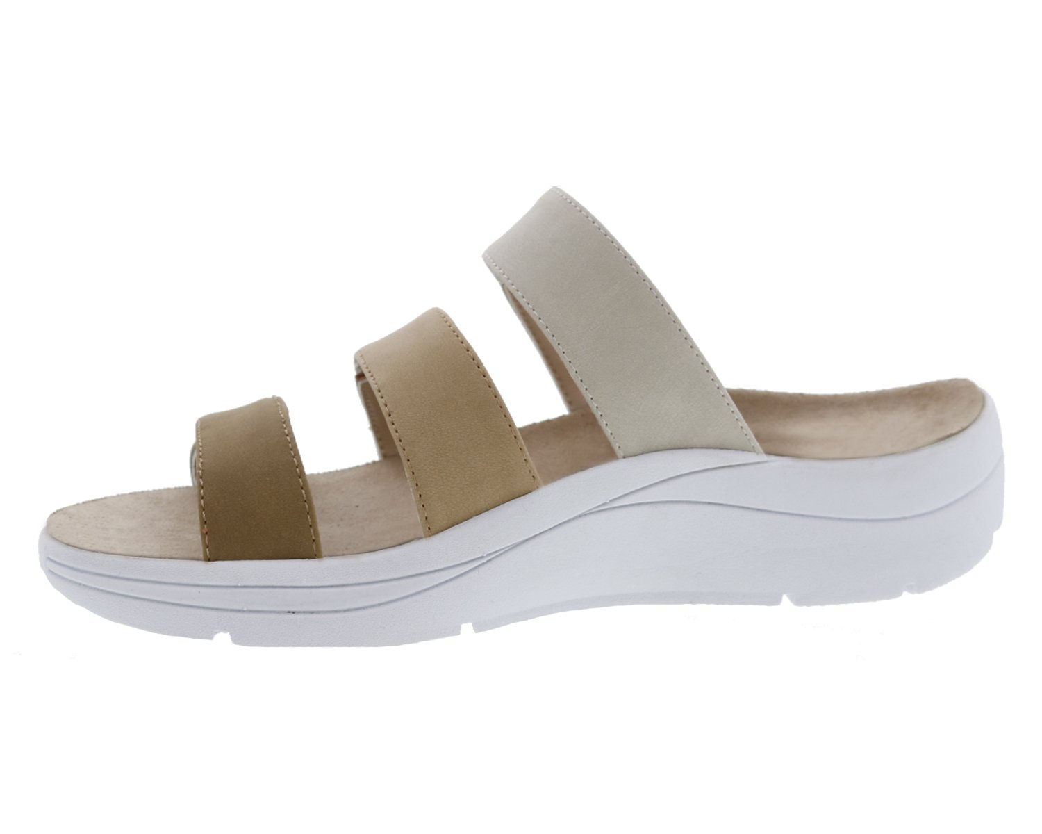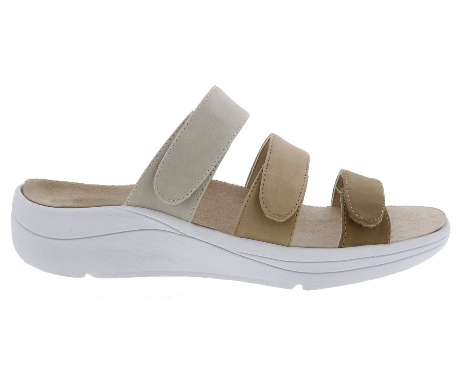 Sawyer womens sandals by Drew® combine an updated modern look with a hard-to-find removable insole.  The removable Walk Right Technology™ footbed makes Sawyer one of the most comfortable women's sandals around! Featuring a lightweight outsole and three hook and loop adjustable straps, Drew Sawyer shoes offer a sophisticated look complemented by all-day support and stability. The hook and loop fastened footbed found in the Drew Sawyer will sit securely in the sandal and you can remove it to make room for a custom orthotic. Ideal for both casual and dress, Drew Sawyer shoes are the perfect sandal for women who demand practical comfort and elegant style.