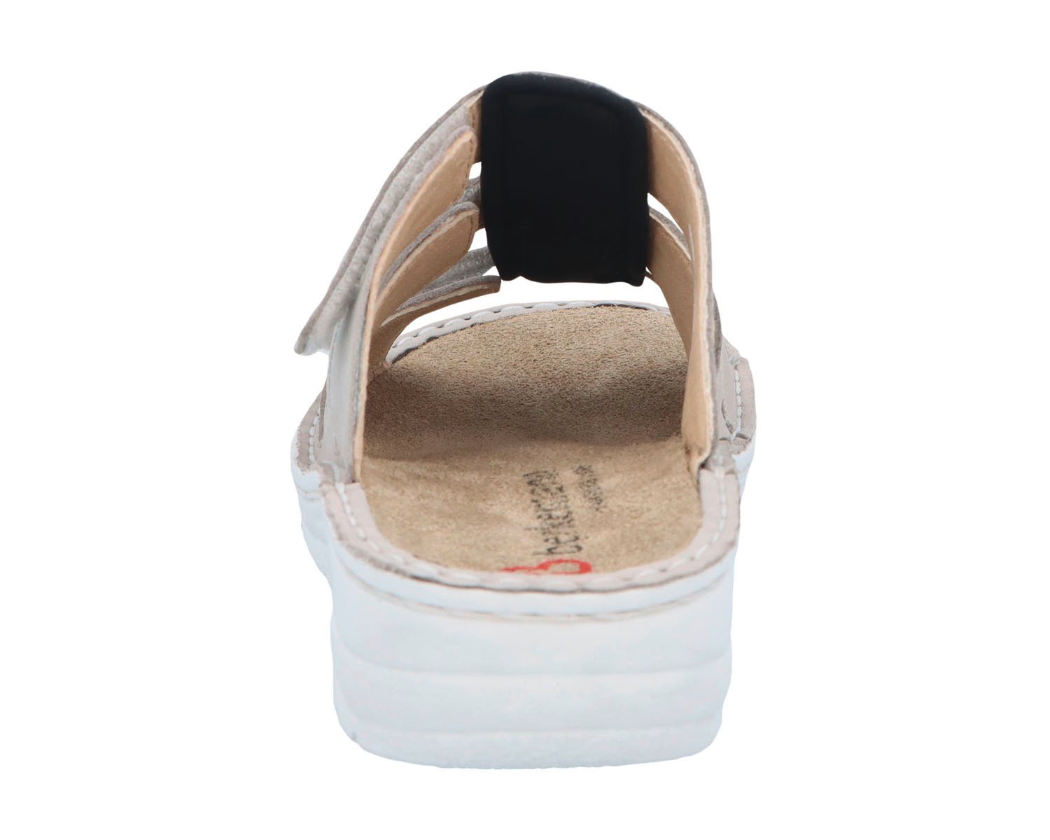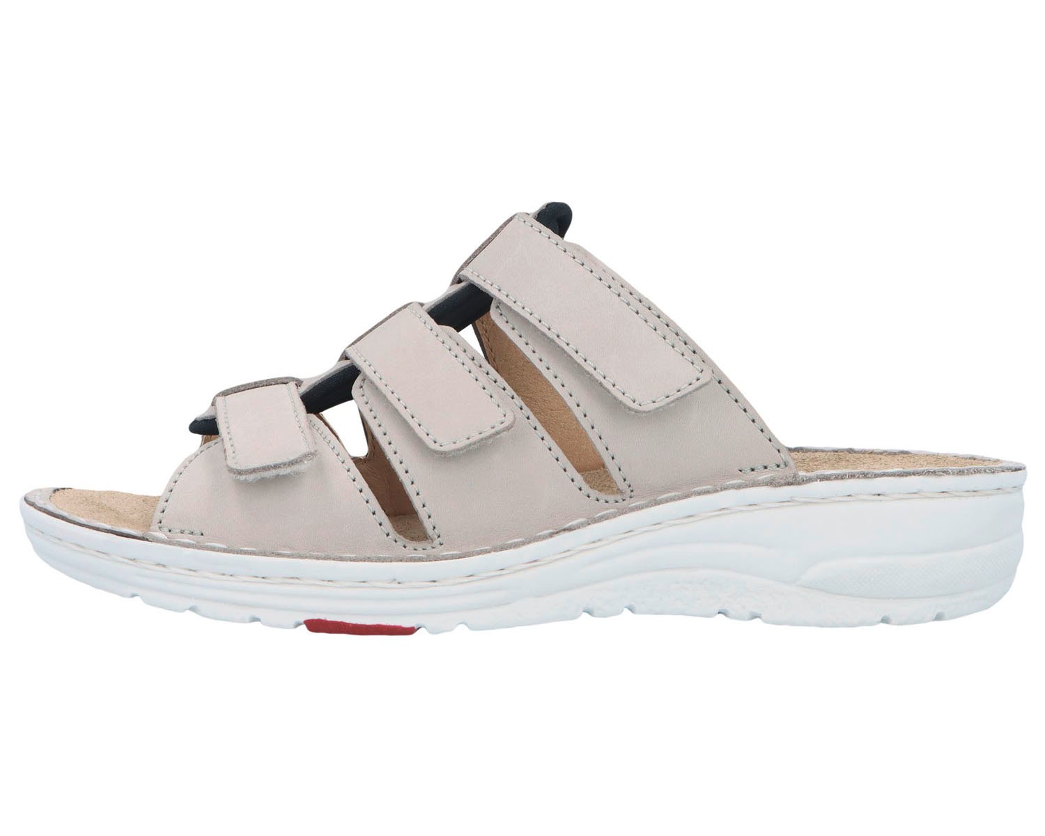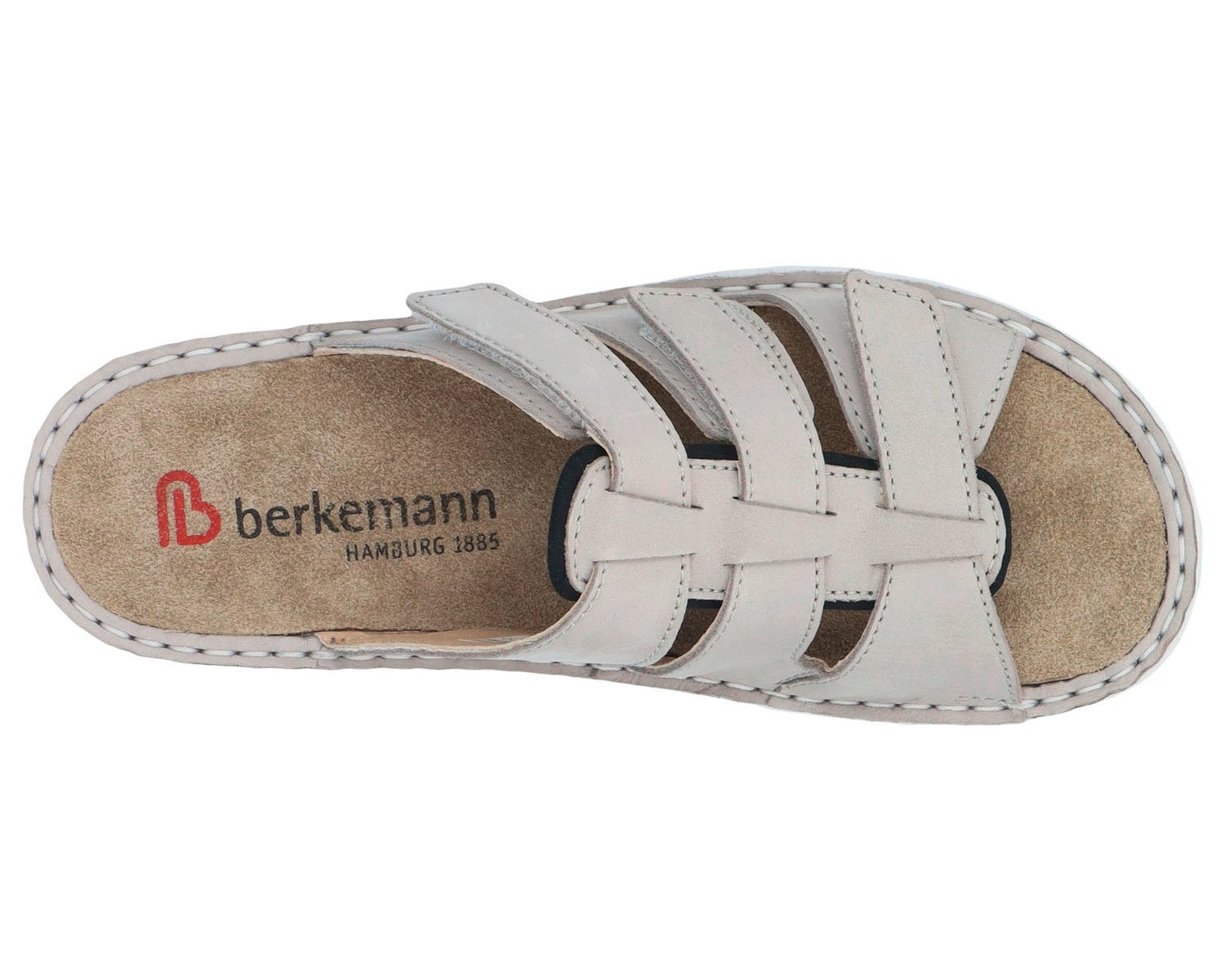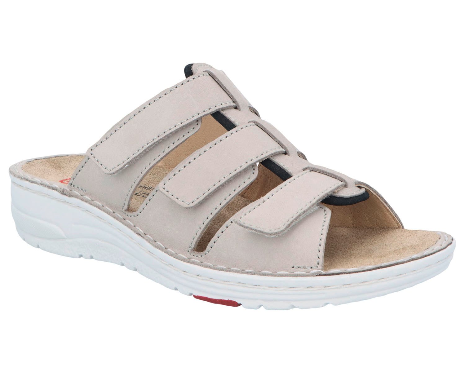 The summery Senta mules from Berkemann impress with their urban style and a variety of comfort features. Senta has three practical hook and loop fasteners, which ensure they are easy to put on and take off, are easy to handle and also feel extremely comfortable and supportive to wear. The back of the foot is padded with very soft neoprene material for a pleasant walking experience. But that's not all – thanks to the removable footbed, these comfort mules are ideal for use with orthopedic custom-made insoles, while the elaborate hand stitching gives the shoe additional flexibility.