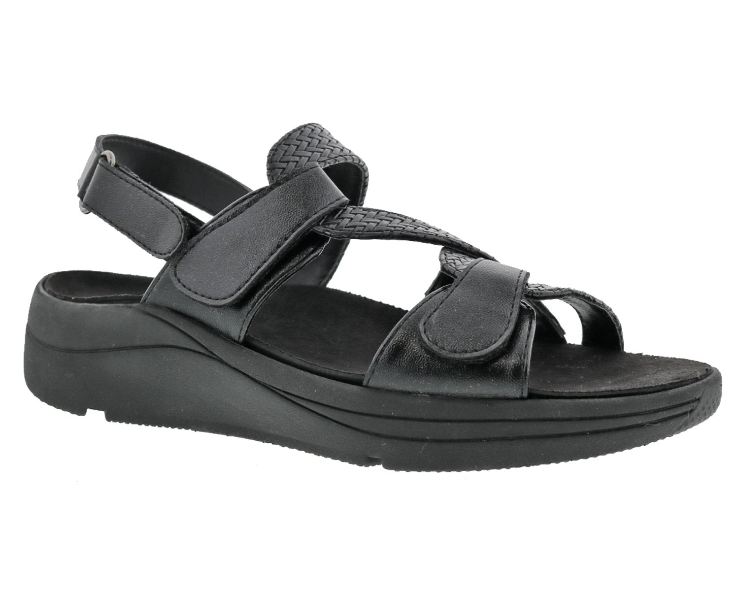 Drew Serenity sandals combine an refreshing, exclusive look with a hard-to-find removable insole. The removable Walk Right Technology footbed makes Drew Serenity sandal the most comfortable women's sandals around! Featuring a lightweight outsole, strong shank and three hook and loop adjustable straps, Drew Serenity sandals offer a smooth look complemented by all-day support and stability. The hook and loop fastened Walk Right footbed found in the Drew Serenity will sit securely in the sandal or you can remove it to make room for a custom orthotic. Ideal for both casual and dress, Drew Serenity sandals are perfect for women who demand comfort and style.