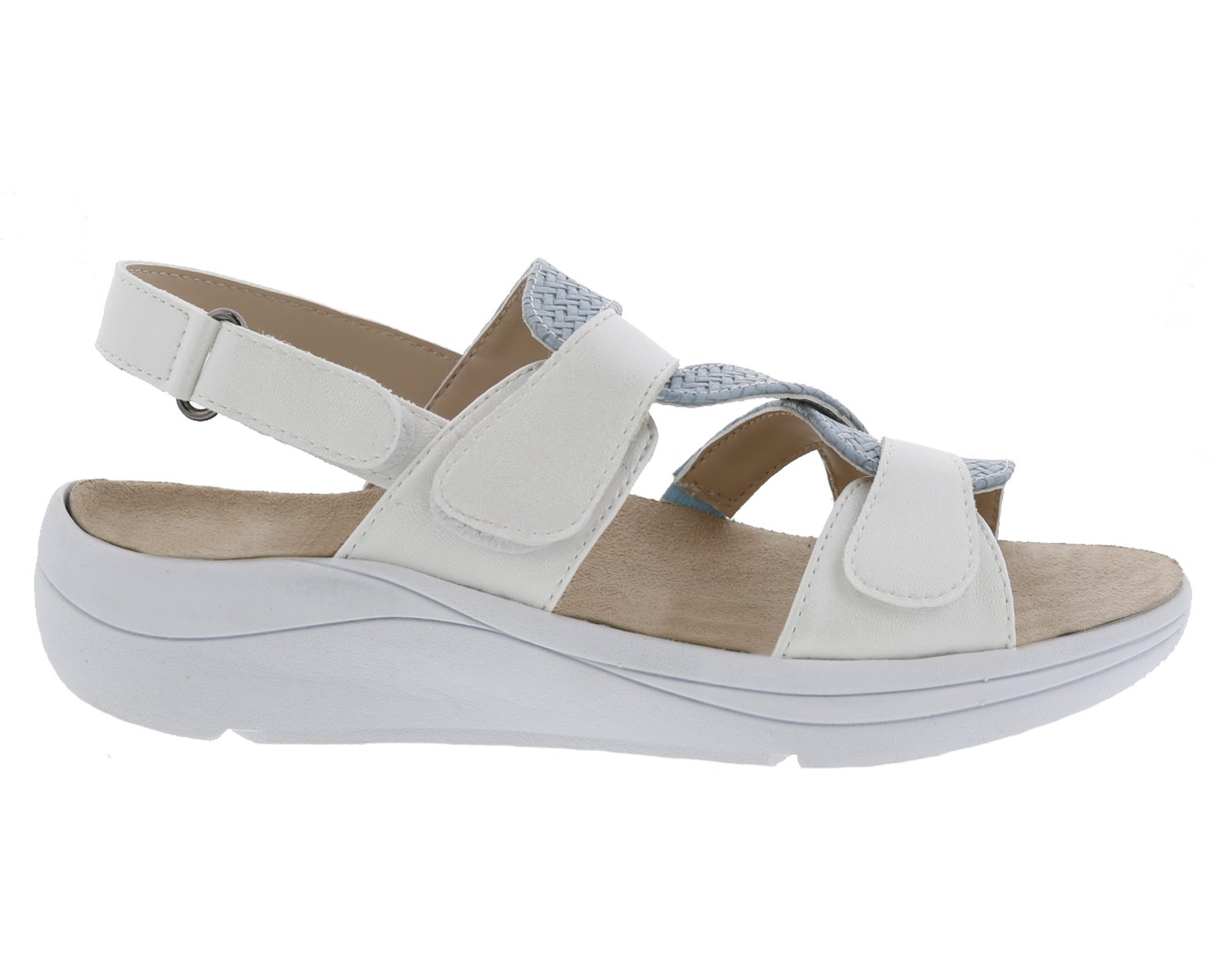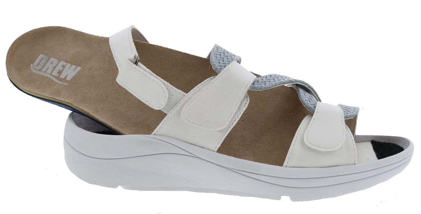 Drew Serenity sandals combine an refreshing, exclusive look with a hard-to-find removable insole. The removable Walk Right Technology footbed makes Drew Serenity sandal the most comfortable women's sandals around! Featuring a lightweight outsole, strong shank and three hook and loop adjustable straps, Drew Serenity sandals offer a smooth look complemented by all-day support and stability. The hook and loop fastened Walk Right footbed found in the Drew Serenity will sit securely in the sandal or you can remove it to make room for a custom orthotic. Ideal for both casual and dress, Drew Serenity sandals are perfect for women who demand comfort and style.