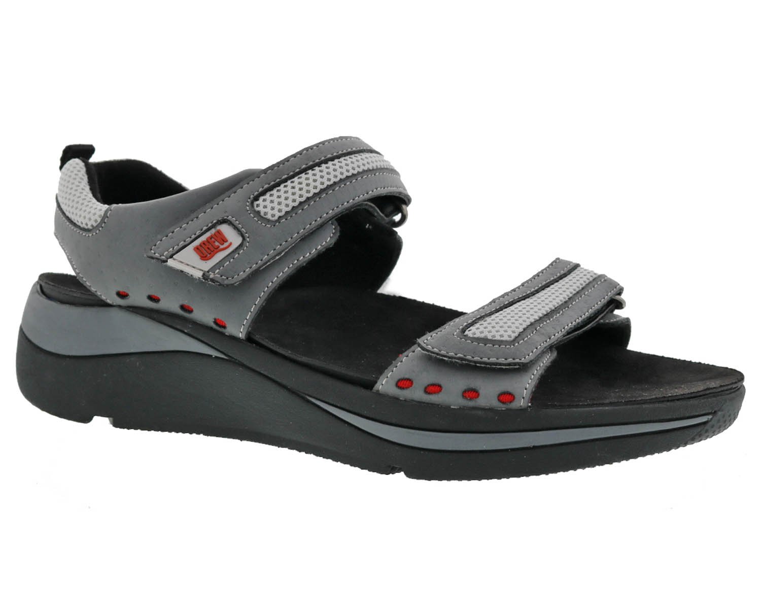 Take a look at the new Sophie womens sandal by Drew! With adjustable straps at the toe and vamp, you're guaranteed a customized fit and comfort throughout the entire day. A hook and loop fastened footbed ensures a stable base or you can remove it to accommodate a prescribed orthotics.