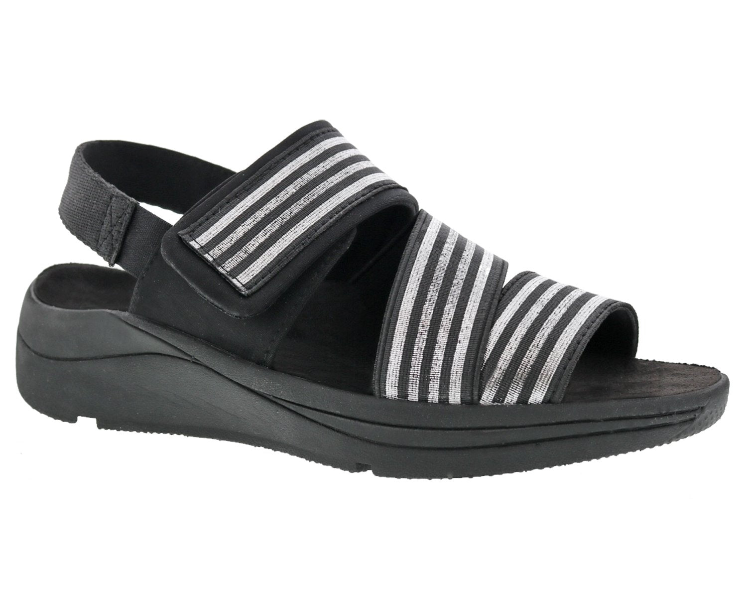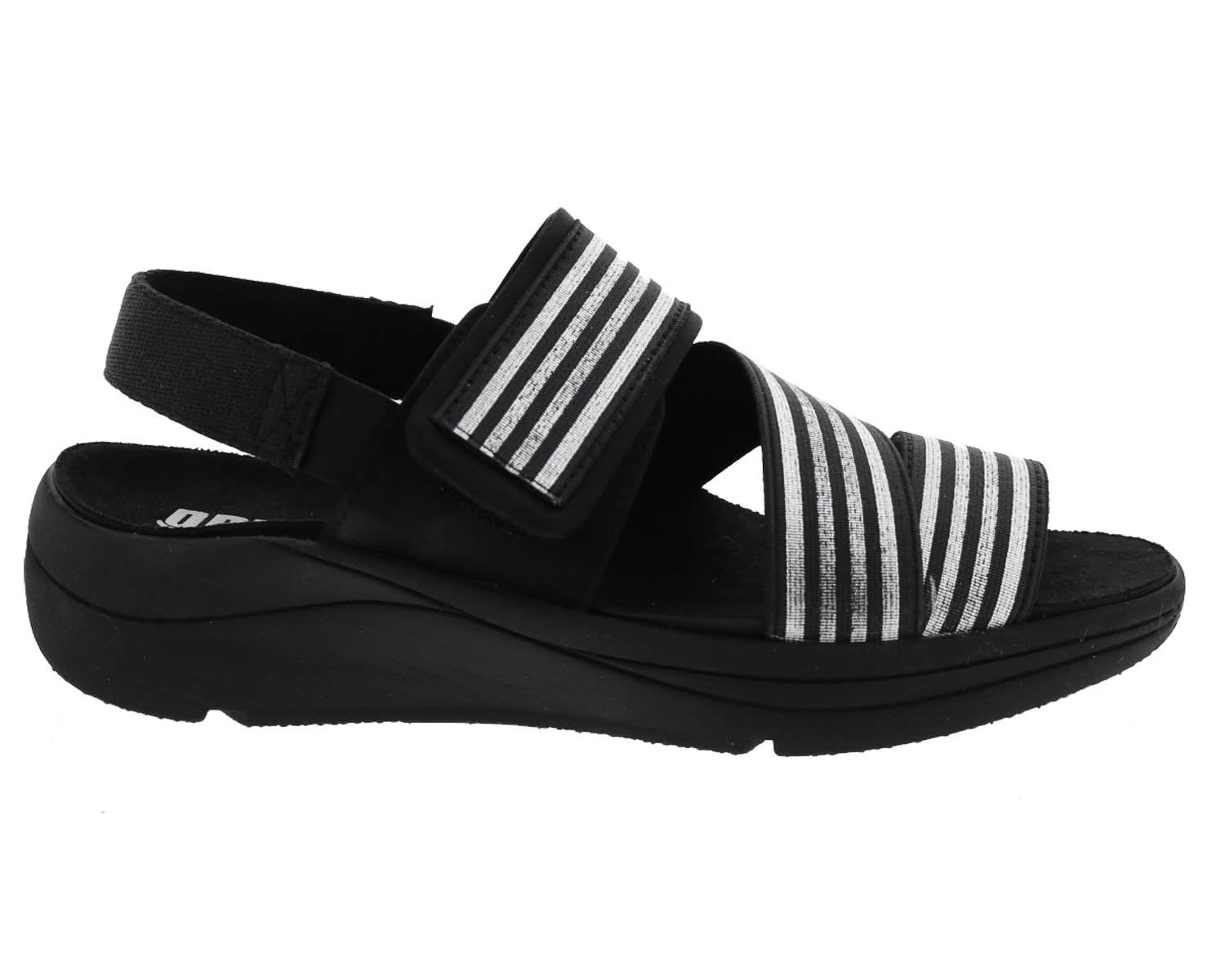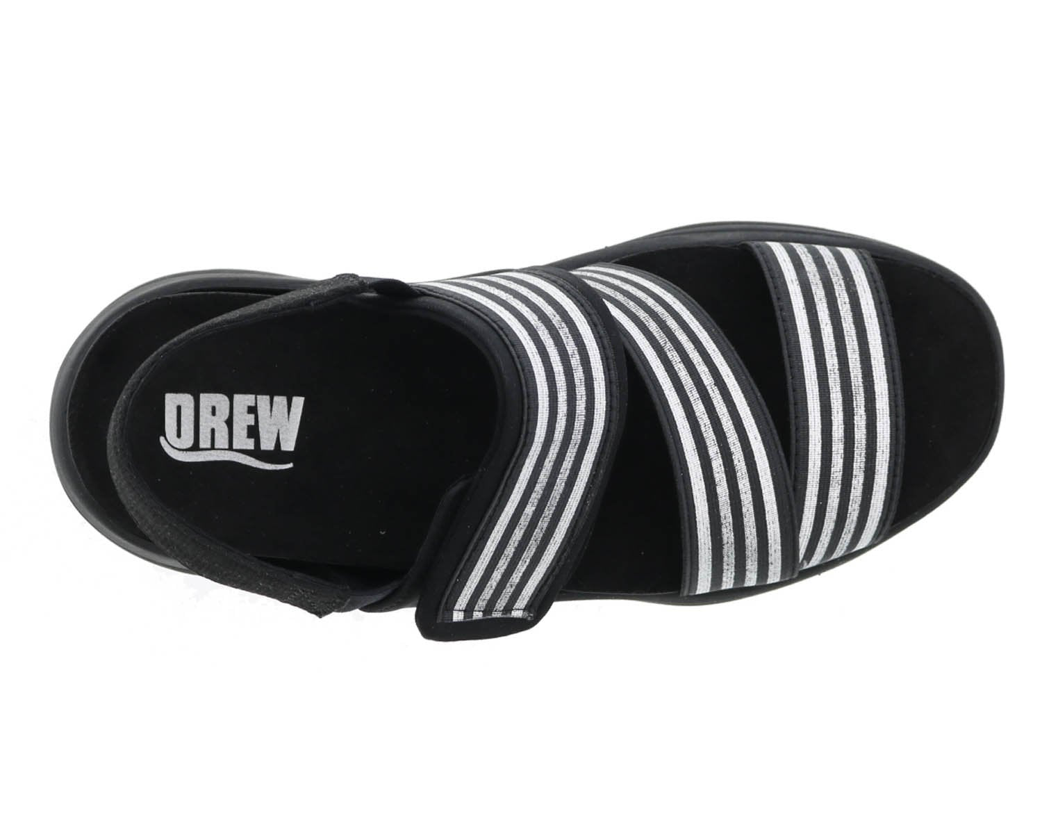 Bring attitude to your look with the Sutton by Drew® sandal. These elastic stretchy strap womens sandals are defined by a stable, slip-resistant sole. The stretch elastic straps provide a flexible, pull-on fit plus adjustable closures so you always have the right fit. The Walk Right Technology™ footbed has a contoured arch and shock absorbing heel cushion. It can also be removed to accommodate your custom orthotic.