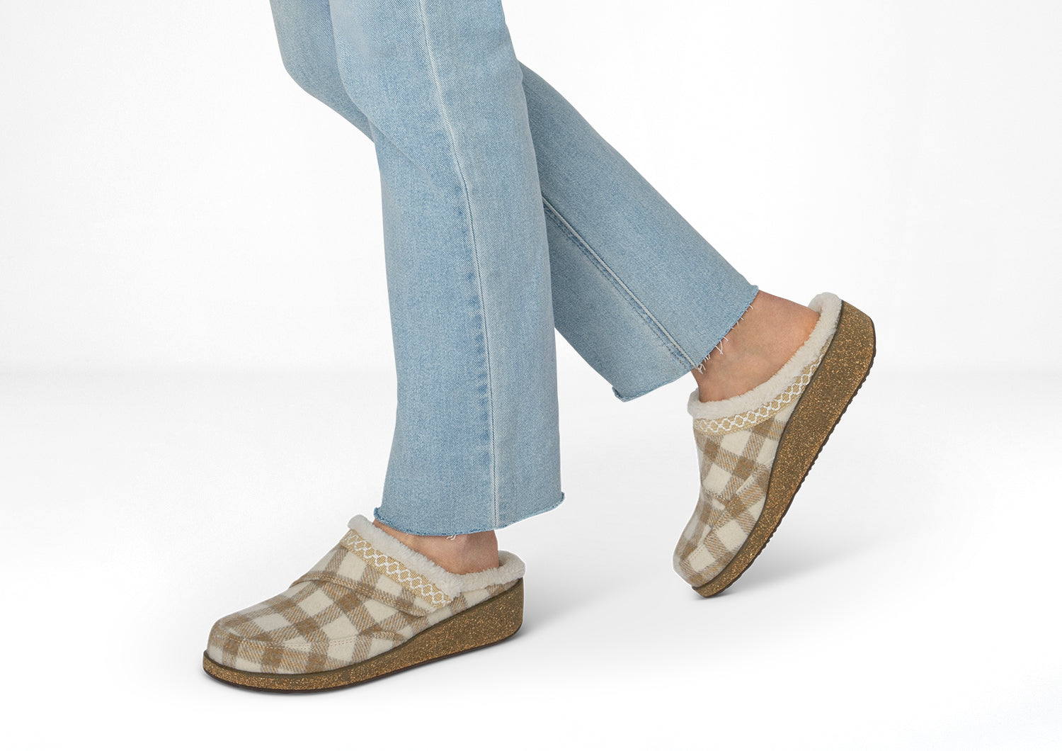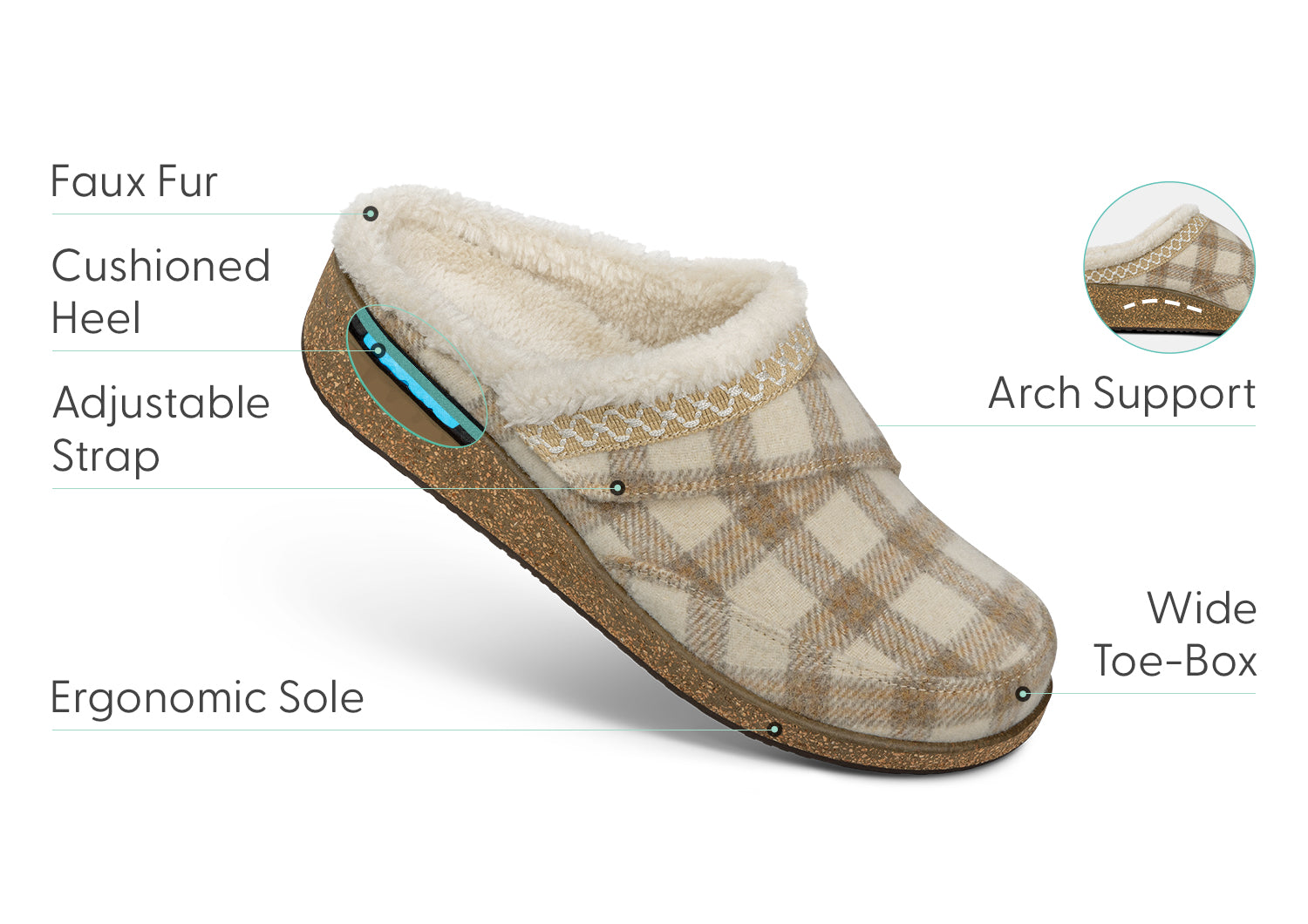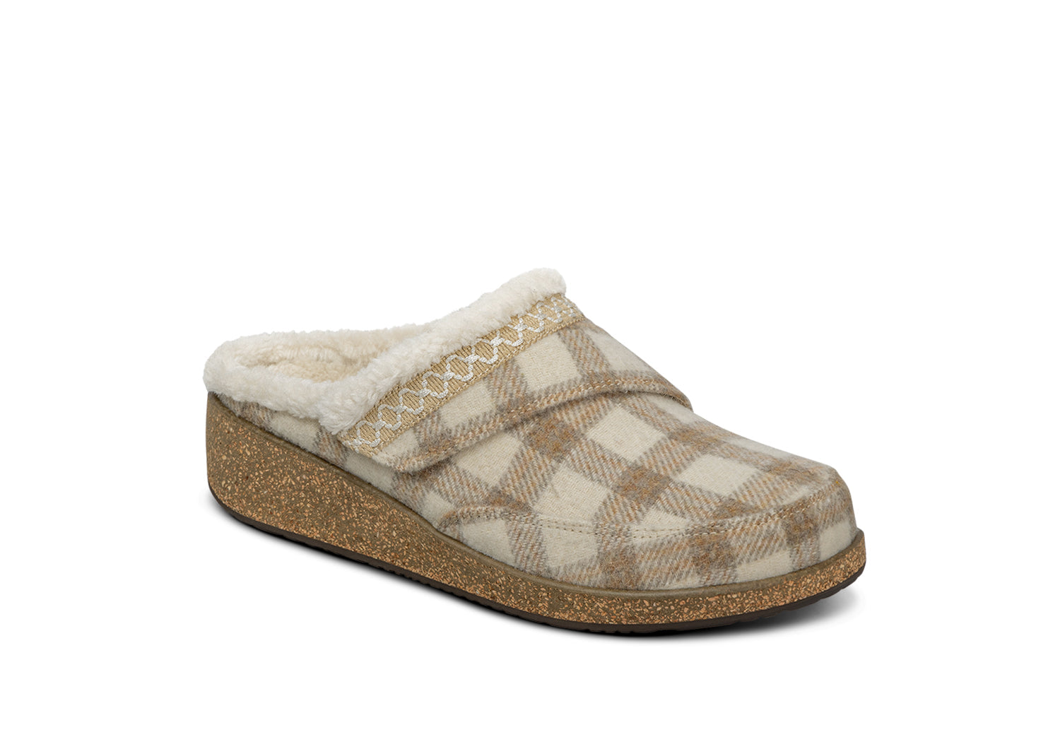 Move easy, with all the comforts of home, even when you venture out. Slip into the faux fur lining (even the insole) for extra cozy protection. And take the pressure out of every step, with Ortho-Cushion™ System support, now in a cork blend wedge slipper! Supple suede uppers, with adjustable strap, wrap a roomy interior, for a secure fit that pampers sensitive conditions.